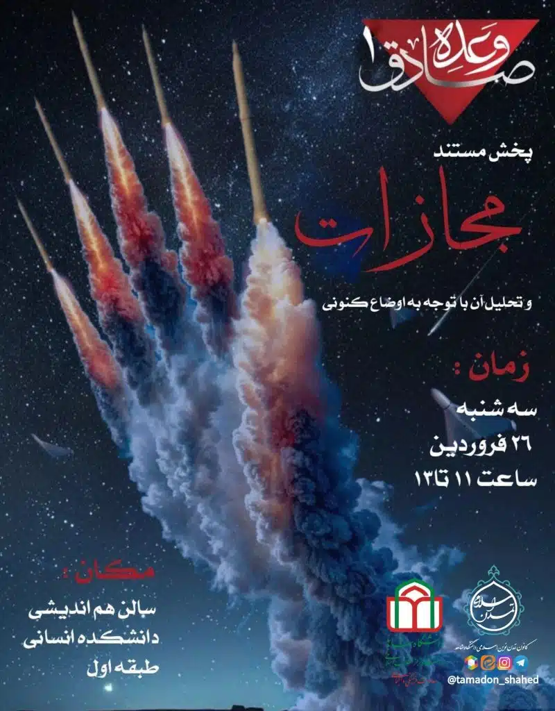 <span;>|همزمان با سالروز وعده صادق۱| سه شنبه ۲۶ فروردین ماه به همت کانون تمدن نوین اسلامی در سالن هم اندیشی دانشکده علوم انسانی به  اکران شد.