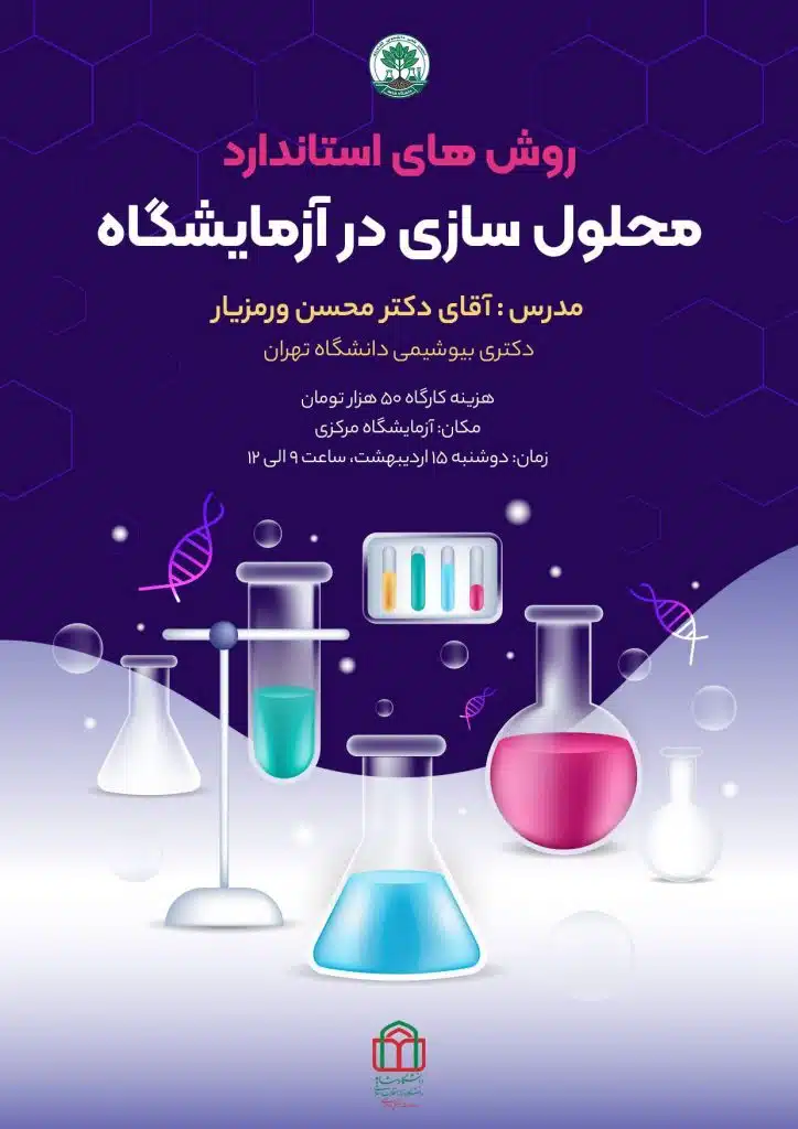 کارگاه روش‌های استاندارد محلول سازی در آزمایشگاه به همت انجمن علمی کشاورزی دانشگاه شاهد برگزار می‌گردد.
