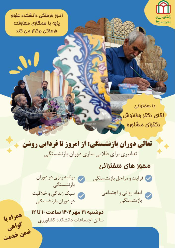 امور فرهنگی دانشکده علوم پایه با همکاری ستاد معاونت فرهنگی و اجتماعی دانشگاه برگزار مینماید؛