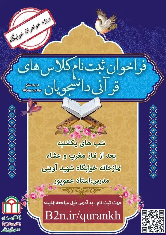 ثبت نام کلاس های قرآنی خوابگاه خواهران (خوابگاه شهید آوینی)