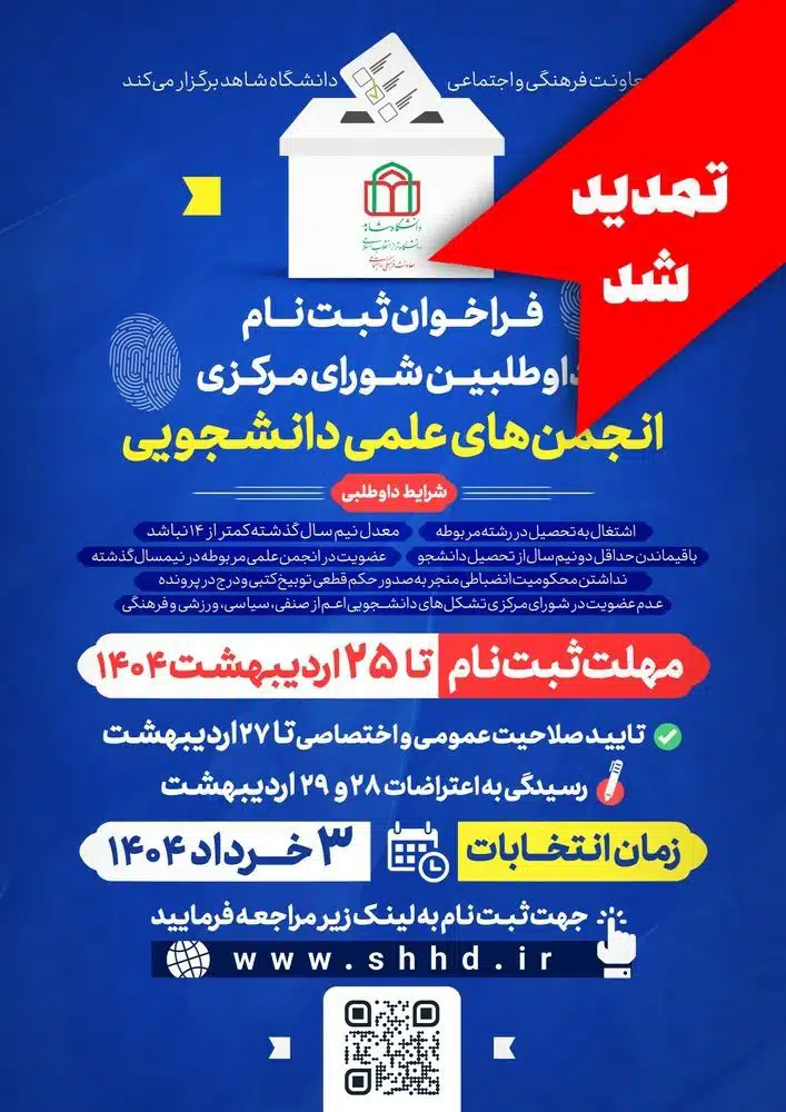 به اطلاع کلیه دانشجویان دانشگاه شاهد می‌رساند؛ ثبت‌نام داوطلبان شورای مرکزی انجمن‌های علمی دانشجویی آغاز شد!