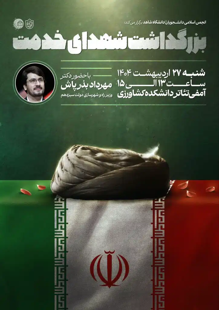 مراسم بزرگداشت شهدای خدمت به همت انجمن اسلامی دانشجویان از ساعت 13 الی 15 روز شنبه 27 اردیبهشت ماه 1404 در سالن آمفی تئاتر دانشکده کشاورزی برگزار میگردد.