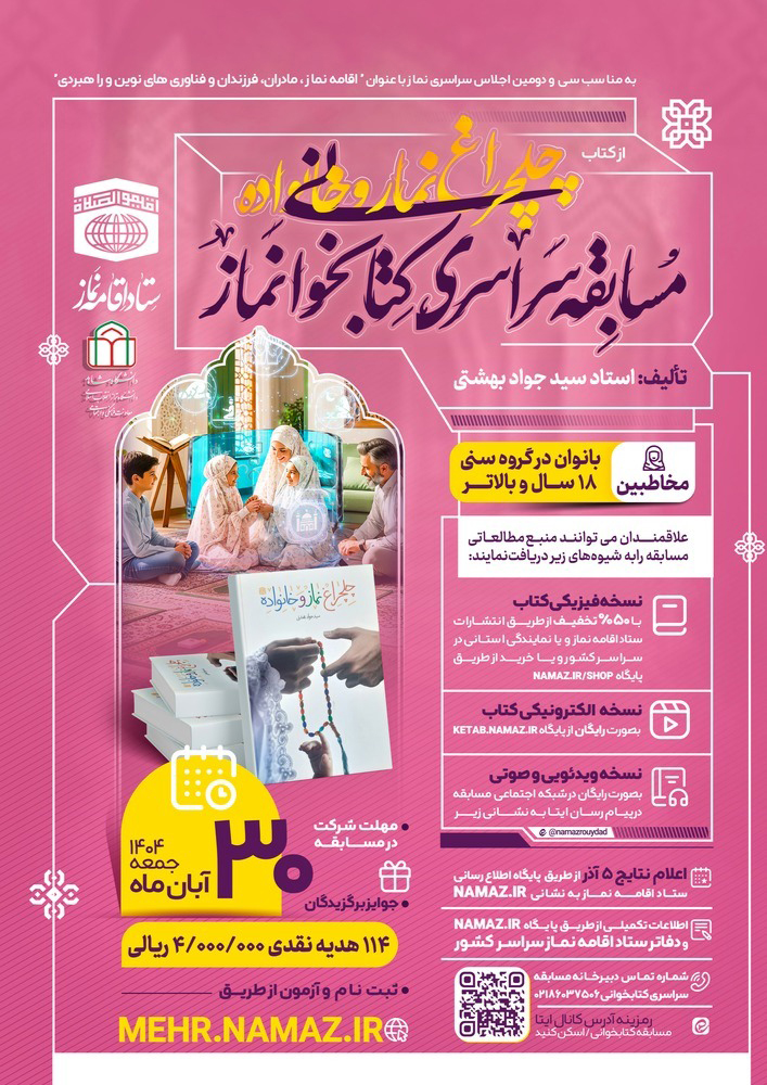 - نتایج مسابقه در صورت عدم تمدید این رویداد در تاریخ ۵ آذر ۱۴۰۴ از طریق پایگاه اطلاع رسانی ستاد اقامه نماز به نشانی namaz اعلام خواهد شد.