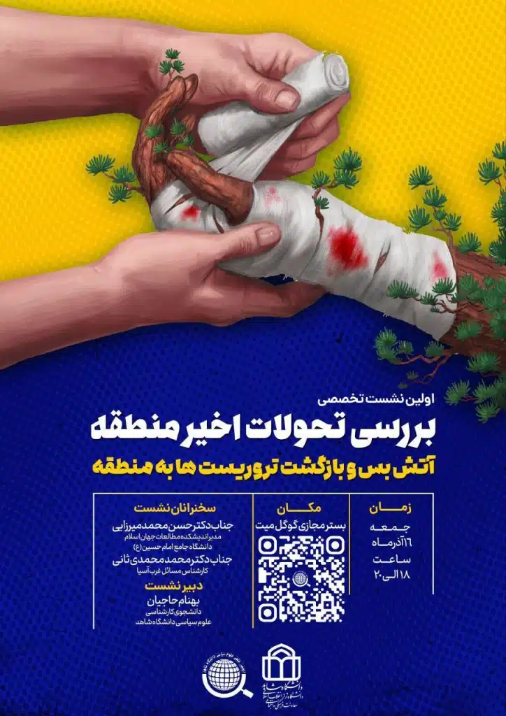 نشست اول از سلسله نشست تخصصی بررسی تحولات اخیر منطقه با عنوان “آتشبس و بازگشت تروریستها به منطقه” جمعه 16 آذر ماه به صورت مجازی و به همت انجمن علمی علوم سیاسی دانگشاه برگزار شد.