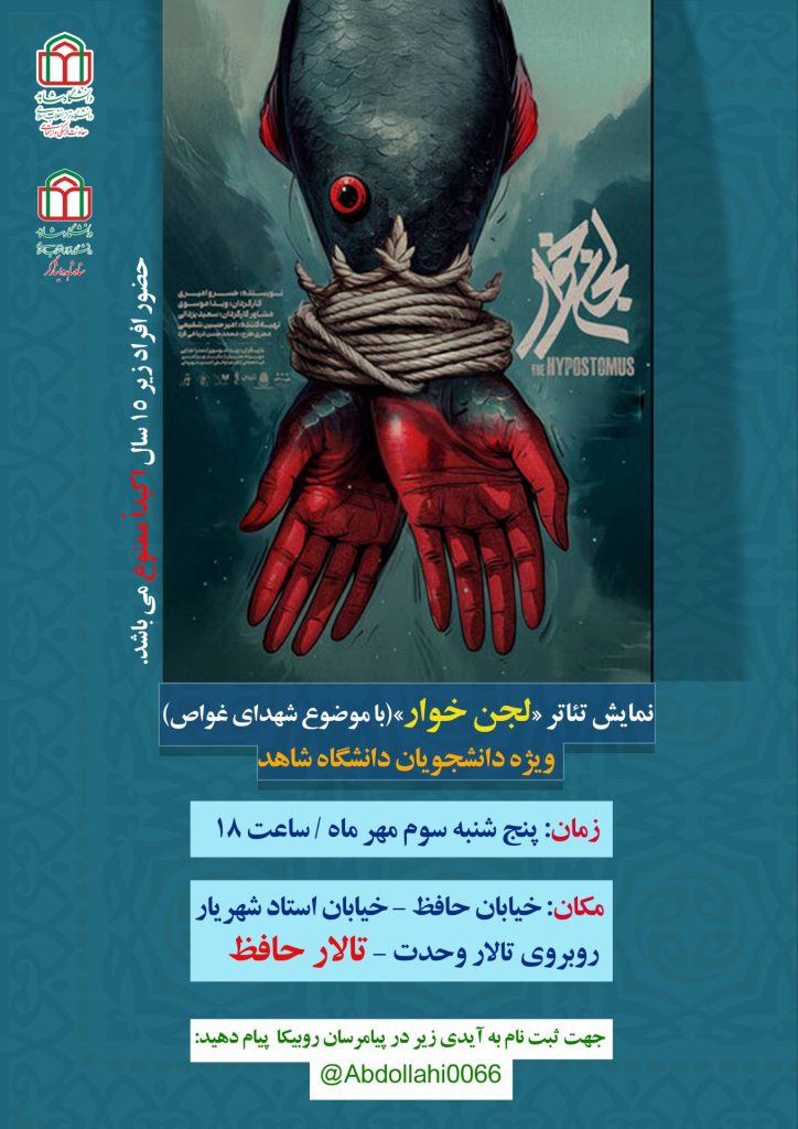 نمایش تئاتر لجن خوار (با موضوع شهدای غواص) ویژه دانشجویان دانشگاه شاهد، برگزار میگردد.