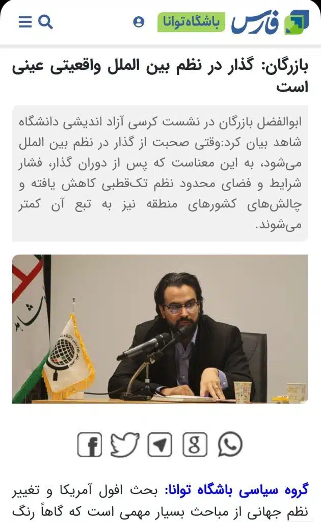 بازرگان: گذار در نظم بین الملل واقعیتی عینی است.