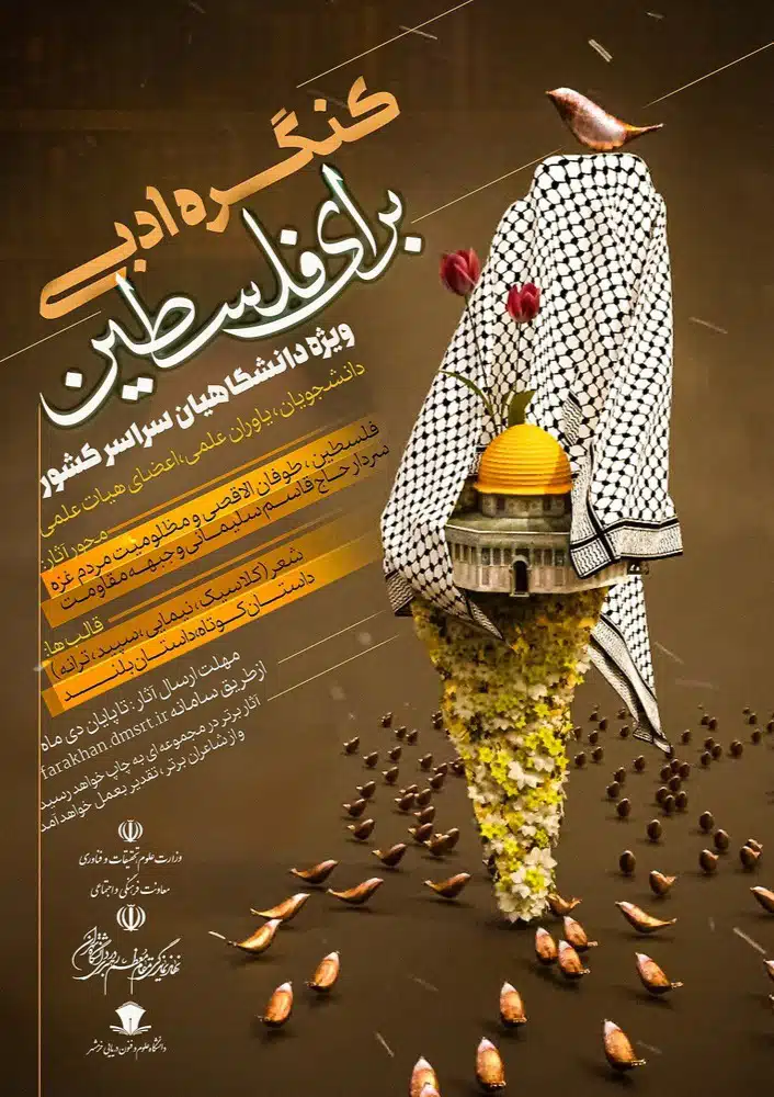 به گزارش معاونت فرهنگی و اجتماعی، کنگره ادبی “برای فلسطین” ویژه دانشگاهیان سراسر کشور در زمینههای شعر (کلاسیک، نیمایی، سپید، ترانه)، داستان کوتاه و داستان بلند برگزار میگردد
