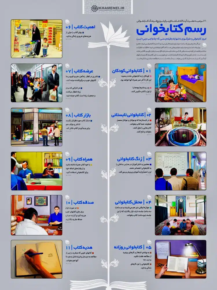 یازده توصیهی رهبر معظم انقلاب اسلامی حضرت آیتالله خامنهای(مدظله العالی)برای ترویج فرهنگ کتابخوانی: