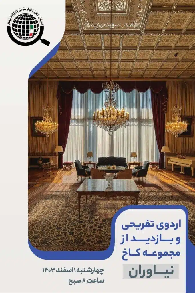 اردوی تفریحی و بازدید از مجموعه کاخ نیاوران به همت انجمن علوم سیاسی دانشگاه چهارشنبه 1 اسفند ماه 1403 ویژه دانشجویان دانشگاه شاهد برگزار میگردد.