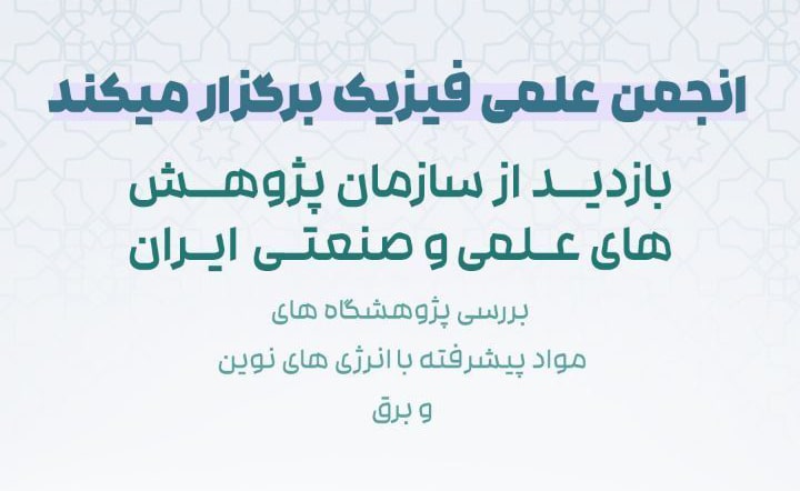 بازدید عمومی از سازمان پژوهش های علمی و صنعتی ایران دوشنبه 25 فروردین ماه 1404 ساعت ۱۲:۳۰ به همت انجمن علمی فیزیک و به صورت رایگان برگزار میگردد. فرم…