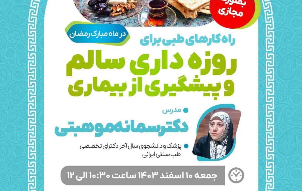 وبینار راه کارهای طبی برای روزه داری سالم و پیشگیری از بیماری، در ماه مبارک رمضان