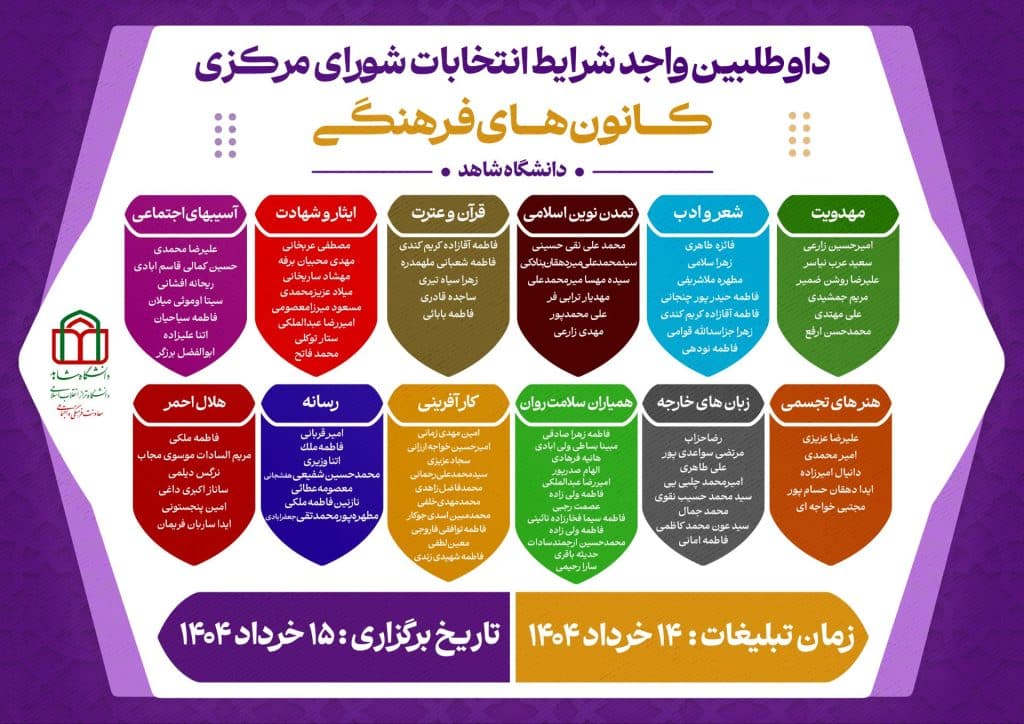 اطلاعیه رسمی انتخابات کانونهای فرهنگی و اجتماعی دانشگاه شاهد